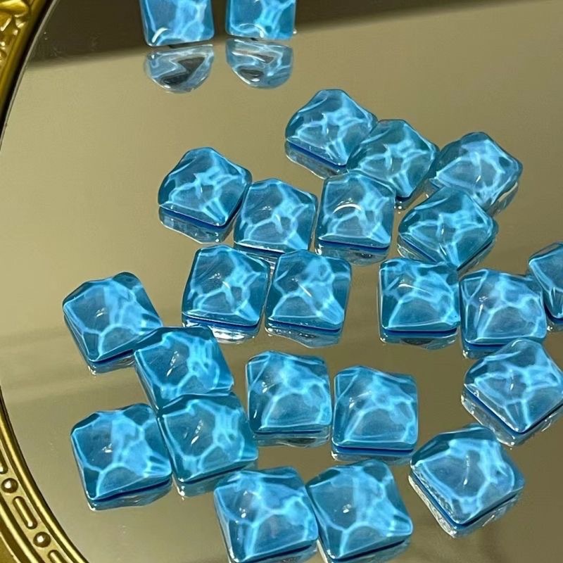 Geometric Square Water Ripple Blue Earrings