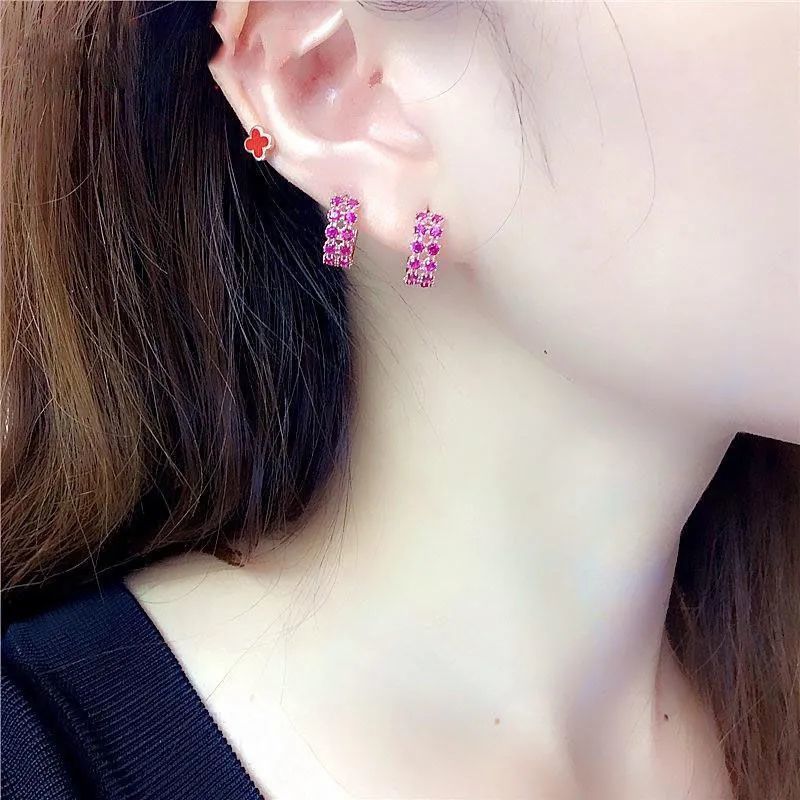 Red Stone Green Stone Lady Fashion Elegant Luxury Versatile Earrings
